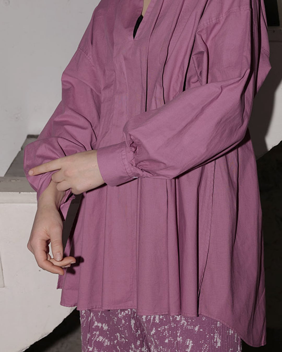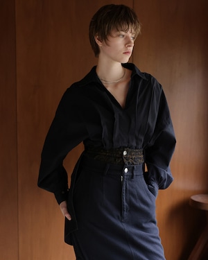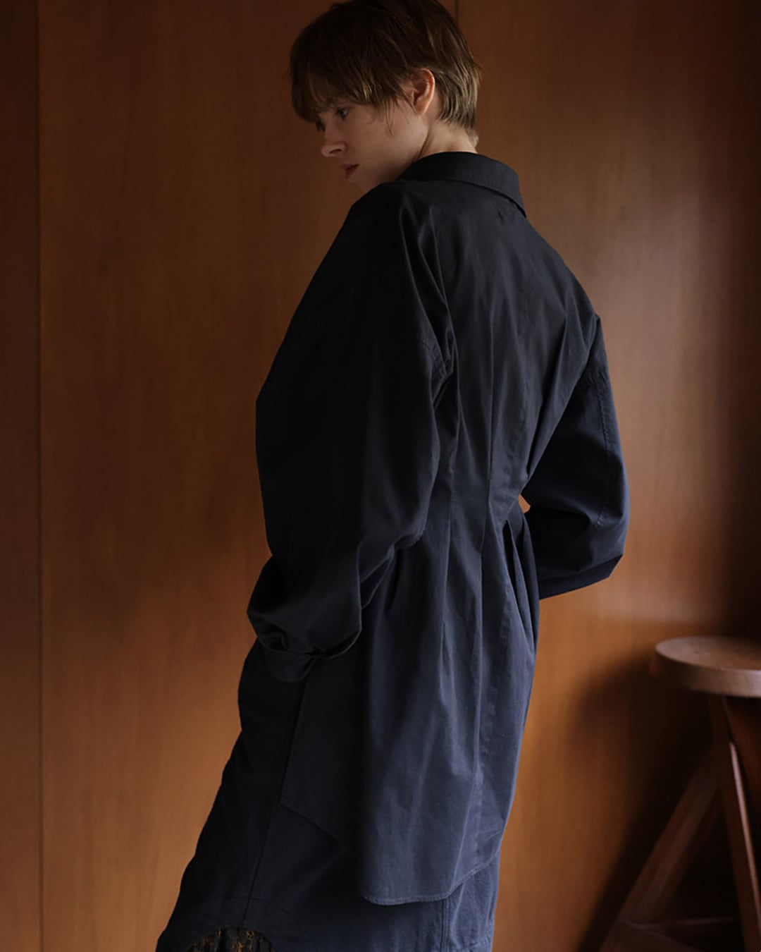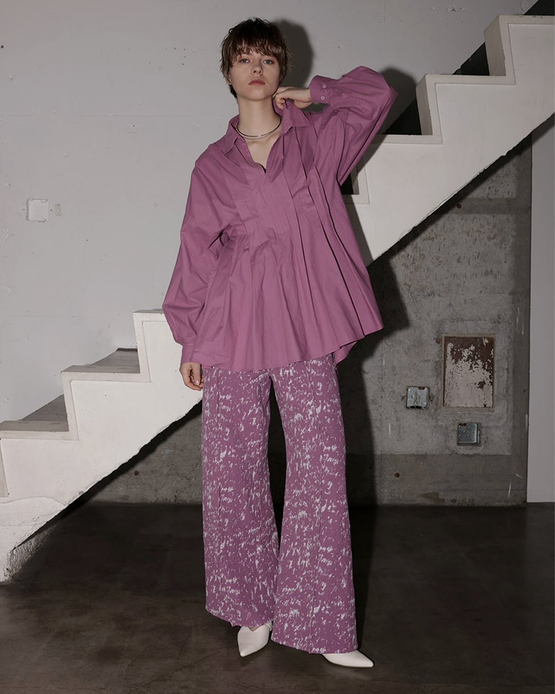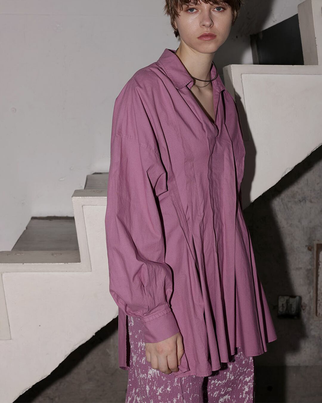 タックを効かせたクチュールライクなシルエットが魅力のシャツプルオーバー。