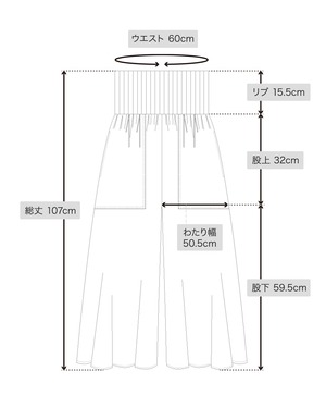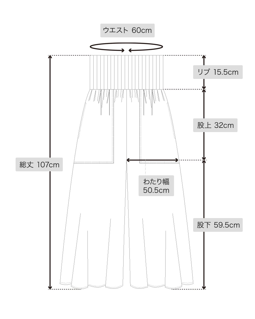 ウエストには、柔らかく弾力のあるリブ素材を使用。快適な履き心地ながらしっかりウエストマークでき、スタイルアップ効果も。