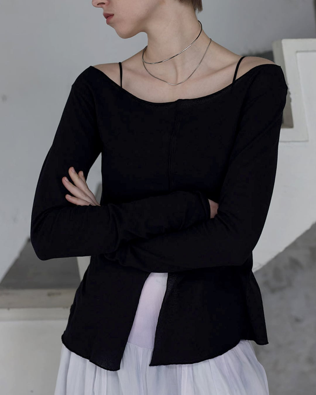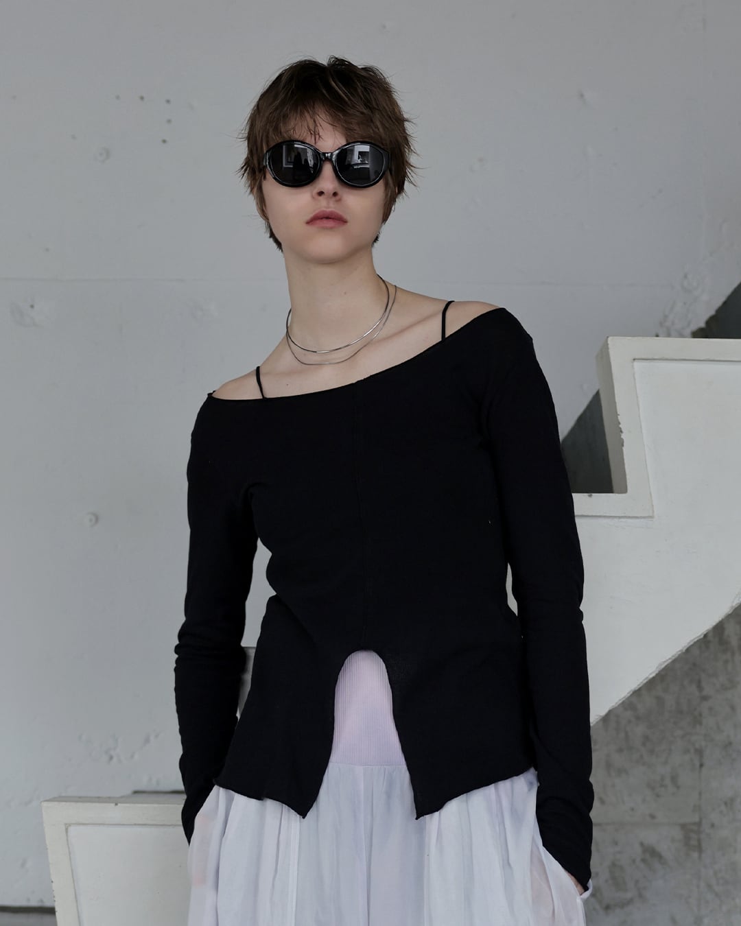 広めのボートネックがデコルテを美しく見せ、女性らしい印象に。柔らかくストレッチの効いた素材で、ボディラインに程よくフィットします。