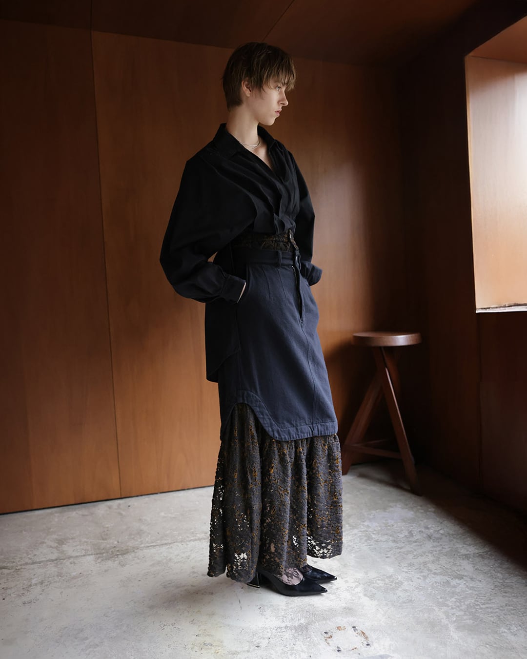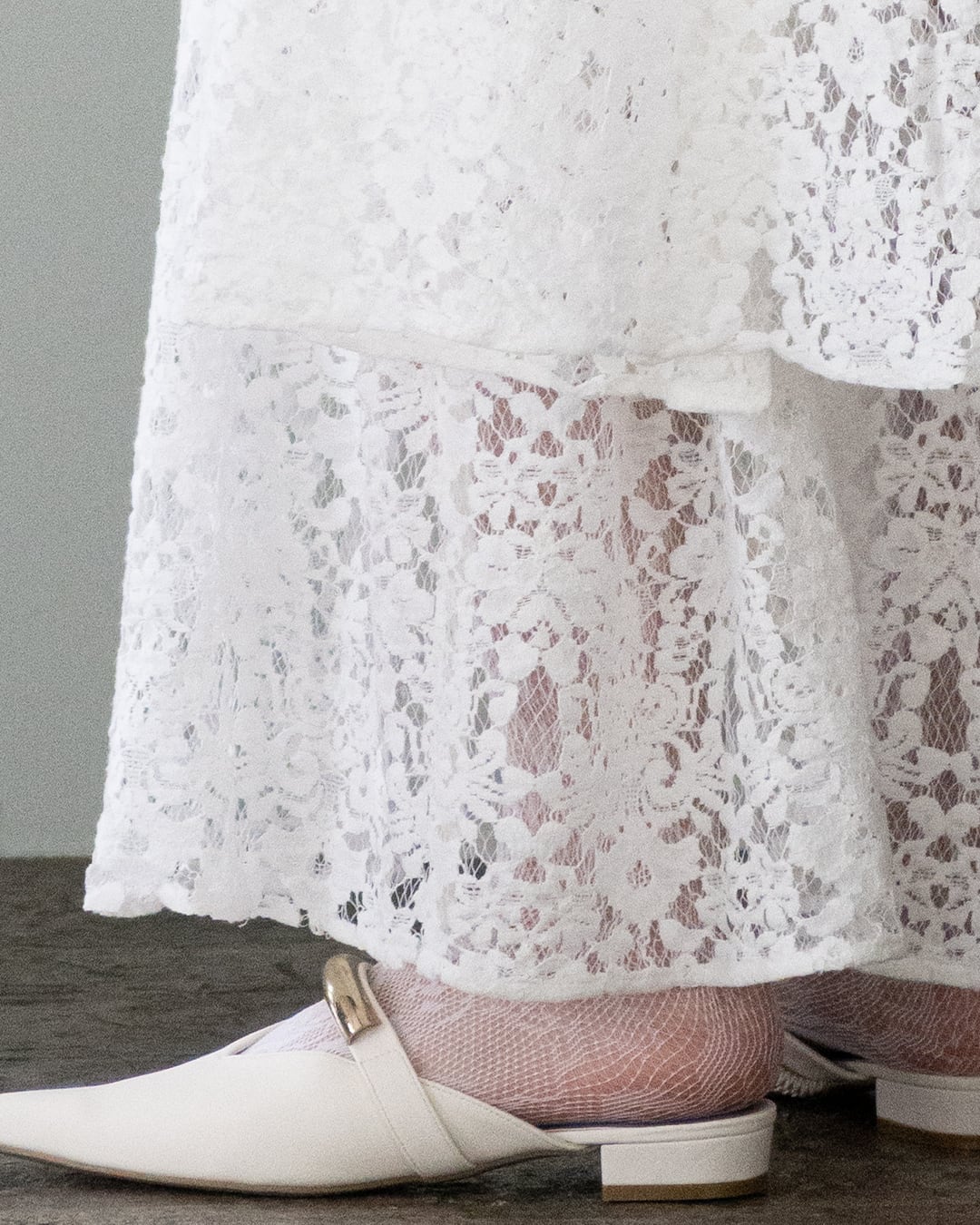 ネル部分はストレート、レース部分はフレアに切り替え、マーメイドシルエットを構築。
