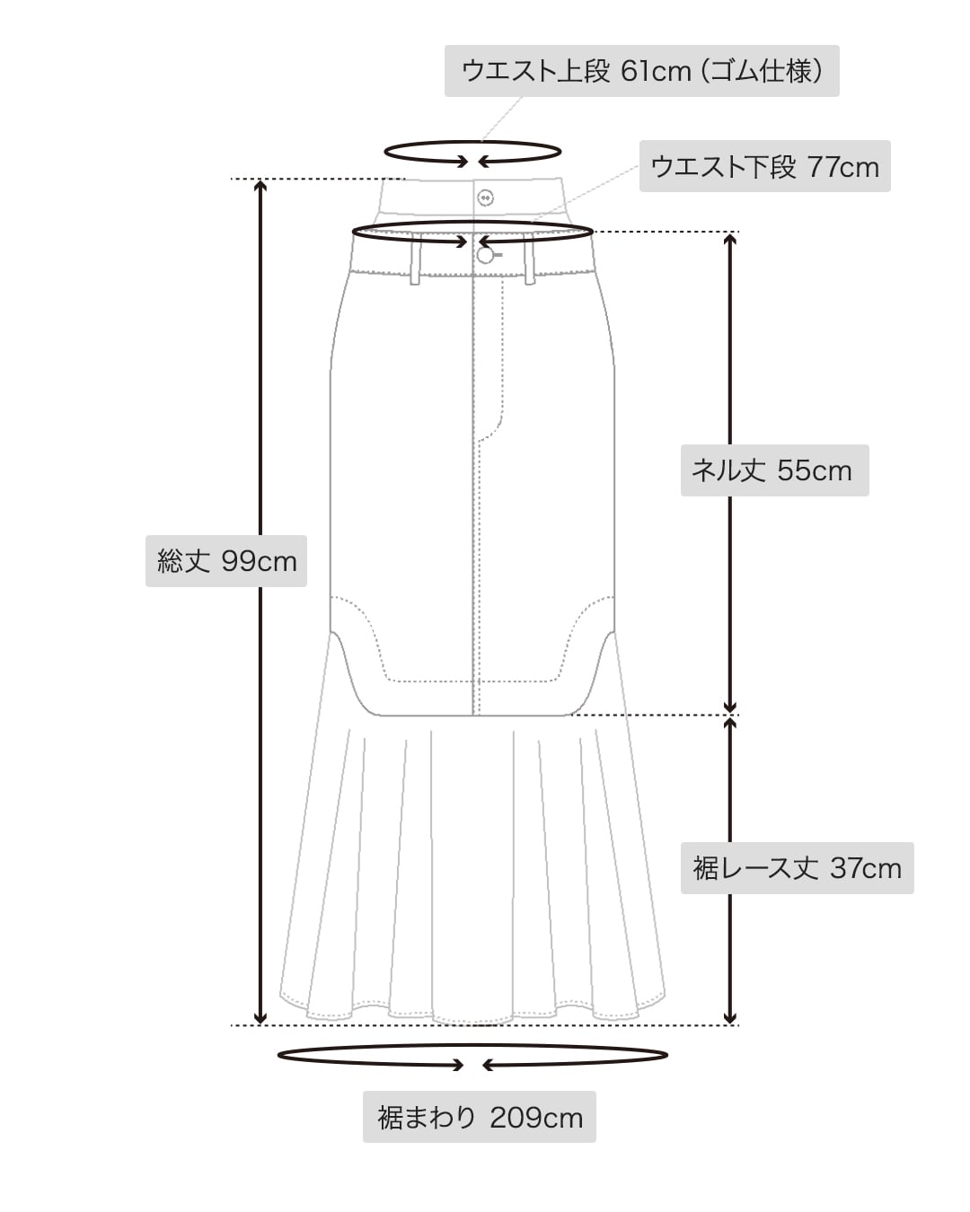 レース裾まわり:209cm