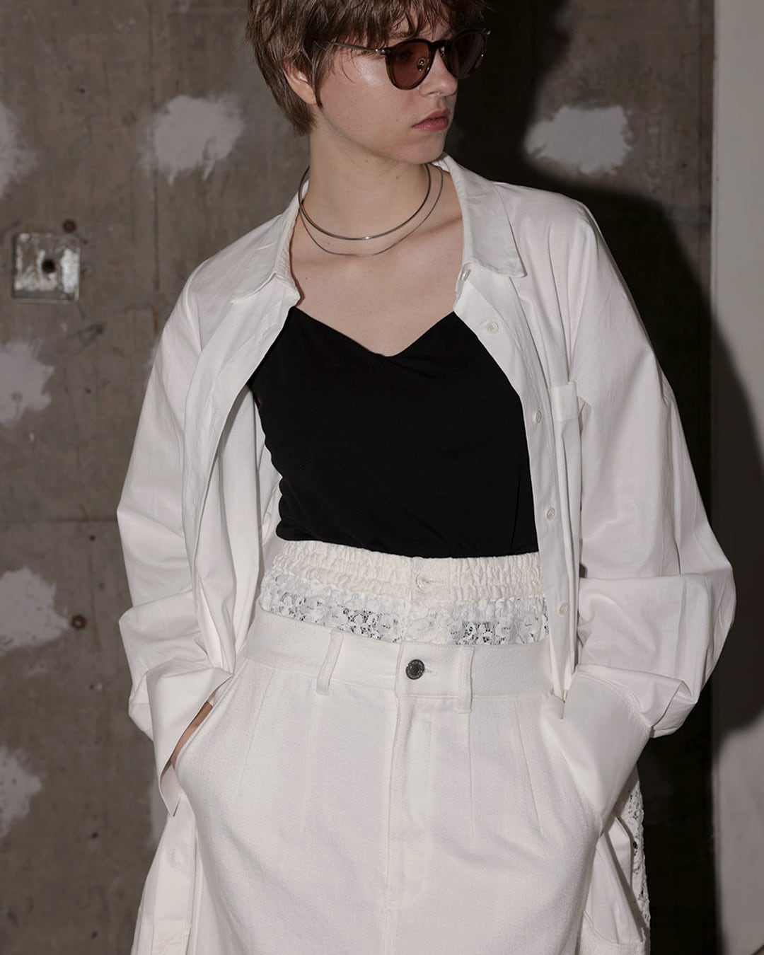 ウエストはレースゴム仕様で快適な履き心地。程よい透け感のレースがマキシ丈ながらも軽やかに仕上げました。
