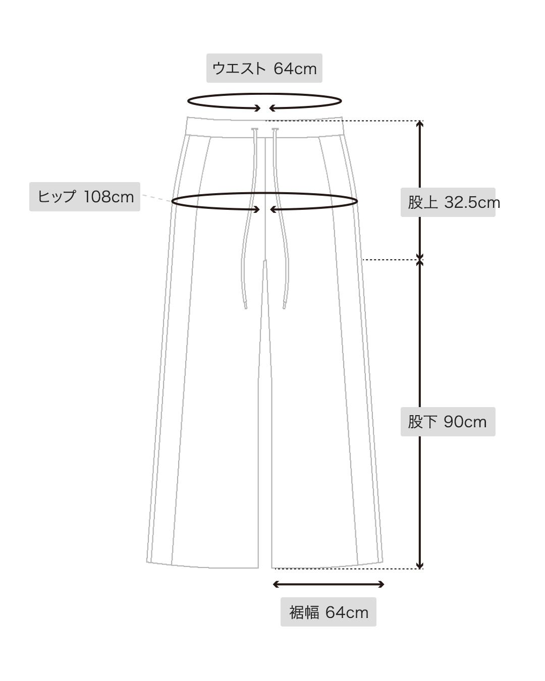 ウエストはゴム仕様で、伸縮リブとコードによりサイズ調整が可能。サイド切替のパッカリングが立体感を生み、自然に脇上がりのシルエットを描きます。