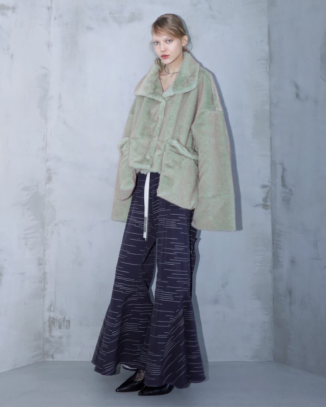 ボリュームたっぷりのエコファーを使用したショート丈コート。