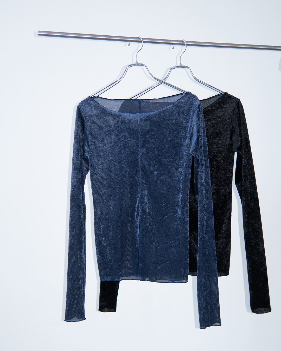 滑らかなツヤ感のあるストレッチベロア。伸縮性が高く、柔らかくて着心地のいい素材。