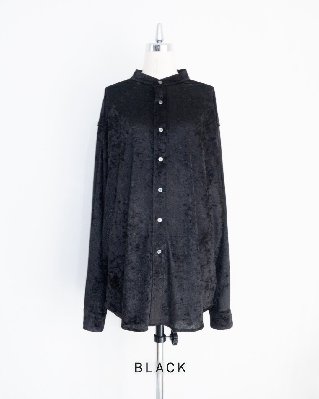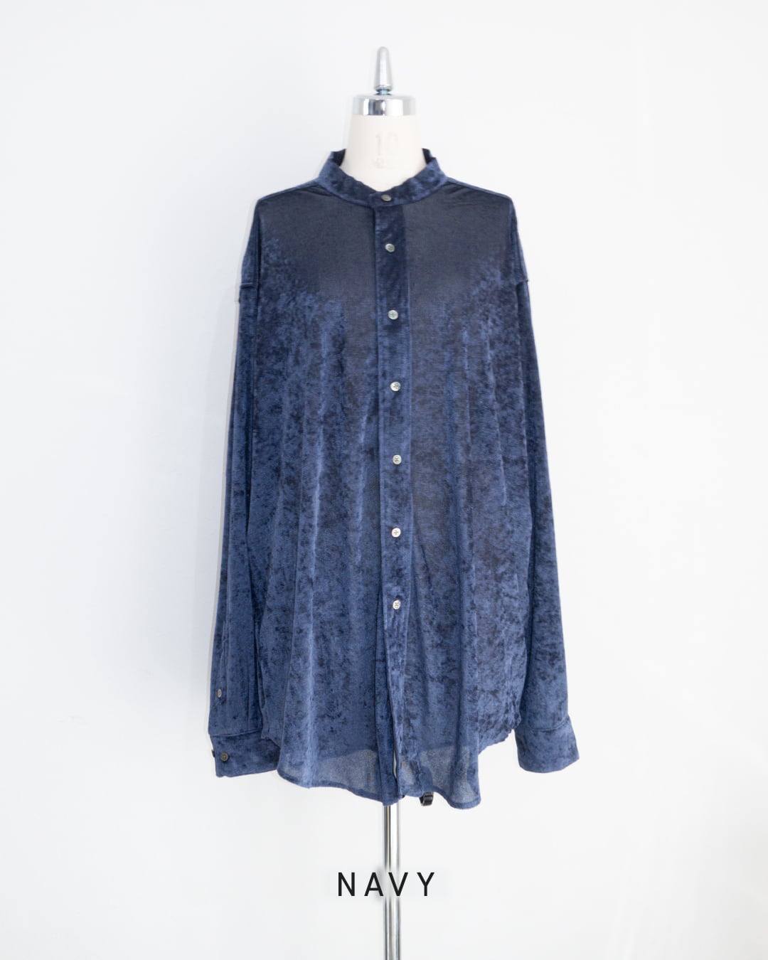 オーバーサイズのスタンドカラーシャツ。
