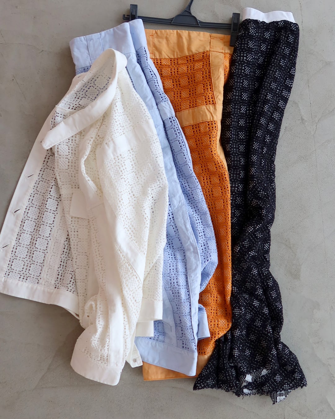 染めることで浮かびあがるテキスタイルが、服の新たな表情を引き出します。